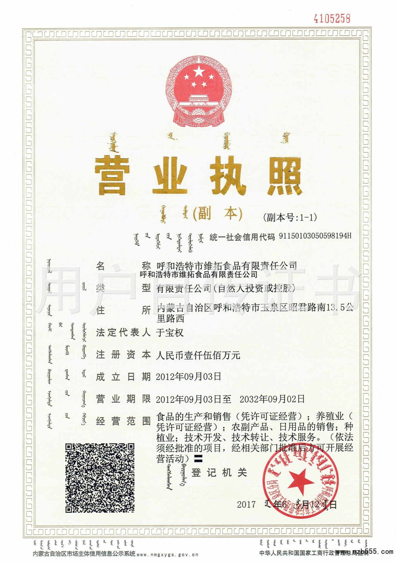 呼和浩特市維拓食品有限責任公司