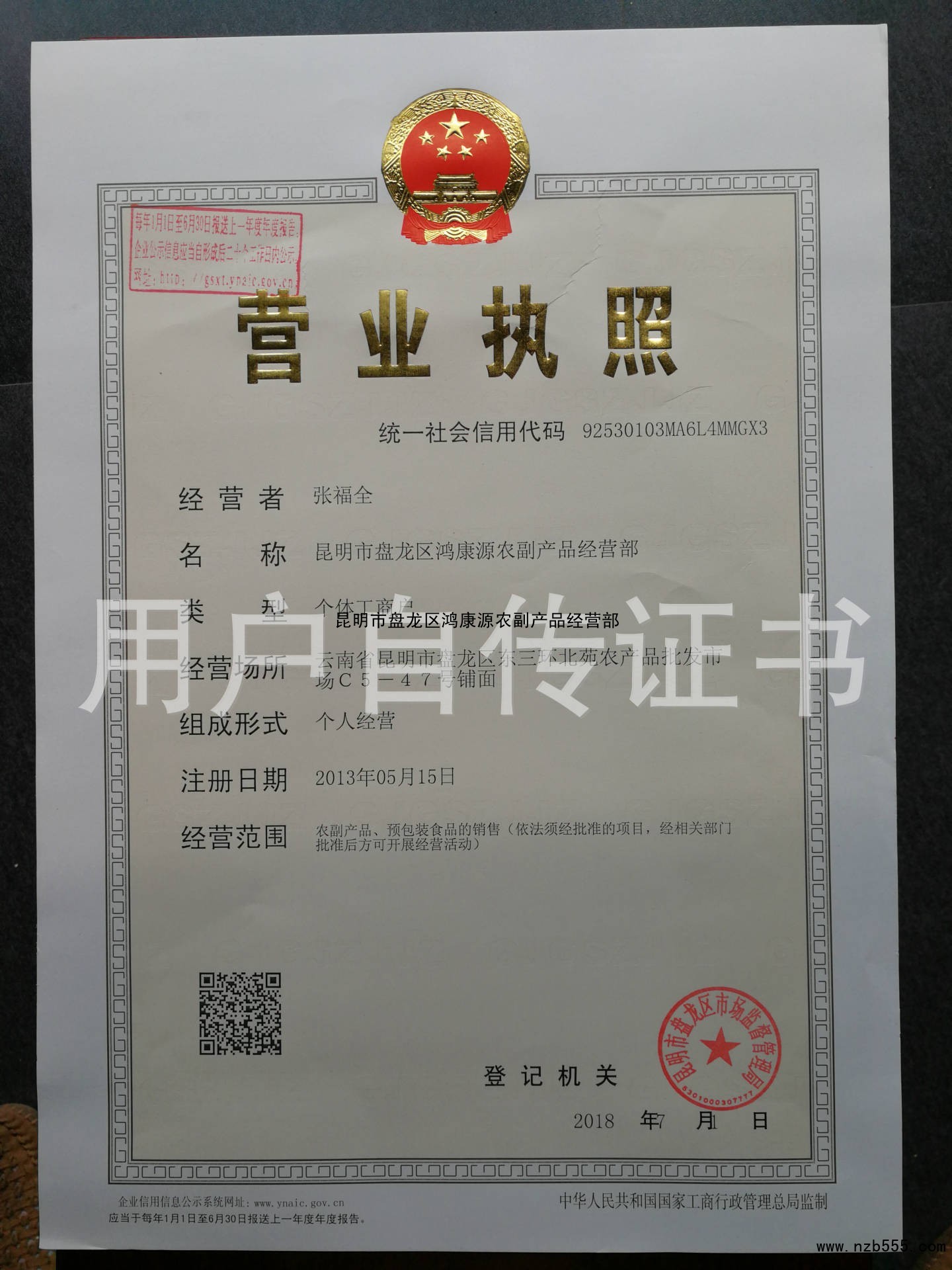 昆明市盤龍區鴻康源農副產品經營部