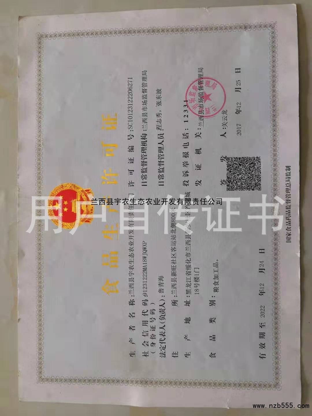 | 發(fā)證機(jī)構(gòu): | 蘭西縣市場監(jiān)督管理局 | 發(fā)證時(shí)間 : | 2017-12-25 |