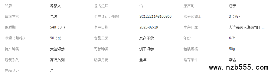 養參人大連純淡干海參干貨批發 干海參水產遼參工廠發貨50g