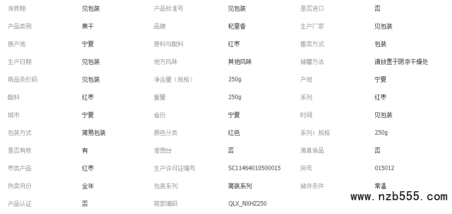杞里香寧夏黃河攤棗 250g袋裝即食寧夏紅棗 皮薄核小寧夏特產(chǎn)紅棗