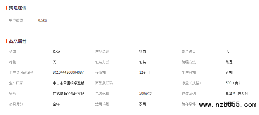 現(xiàn)貨秋燁廣味煲仔飯廣式臘腸 500g廣東特產(chǎn)冬菇瑤柱臘腸禮品袋裝