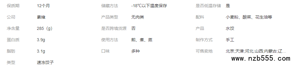 素饗善業(yè) 手工速凍酸菜水餃 多種口味 保質(zhì)期12個月